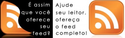 Neste processo, um critério que é altamente relevante para que eu deixe ou não de assinar os feeds de um blog é se ele disponibiliza ou não os feeds completos para leitura. Acho UM SACO receber apenas um resumo e ter que ir ao blog para ler o restante do texto que a pessoa postou, por isso apenas assino os feeds que aparecem completos no meu Google Reader.