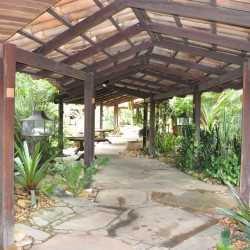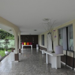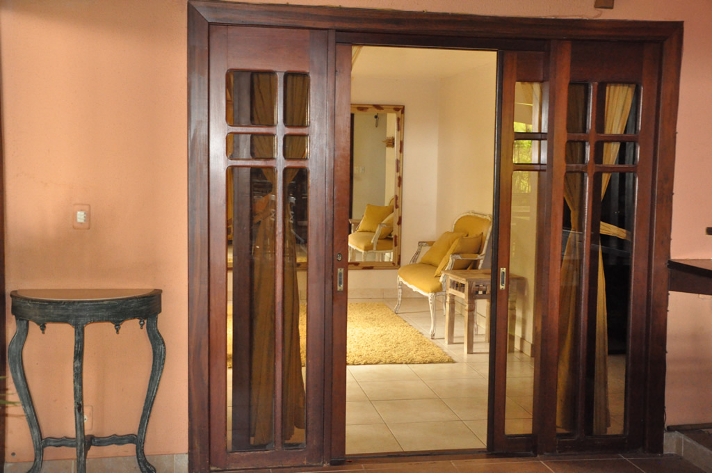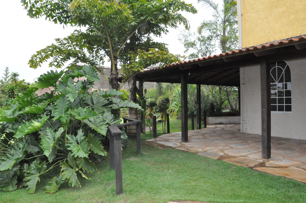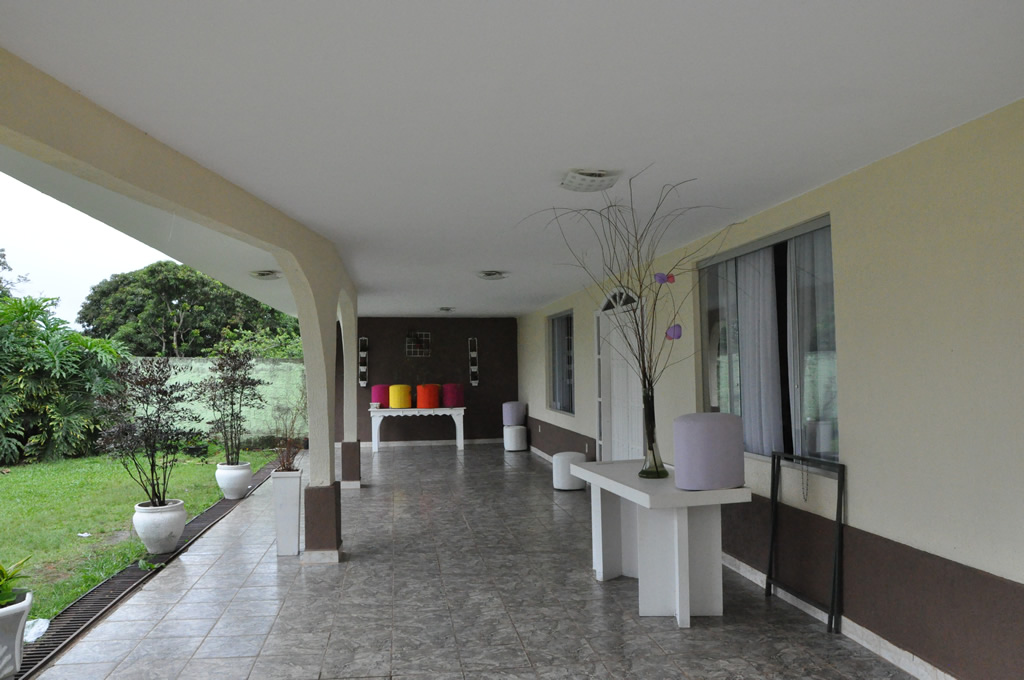 - Recepção coberta: Bem ampla, com escadaria e portas e janelas arqueadas.