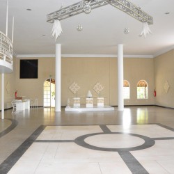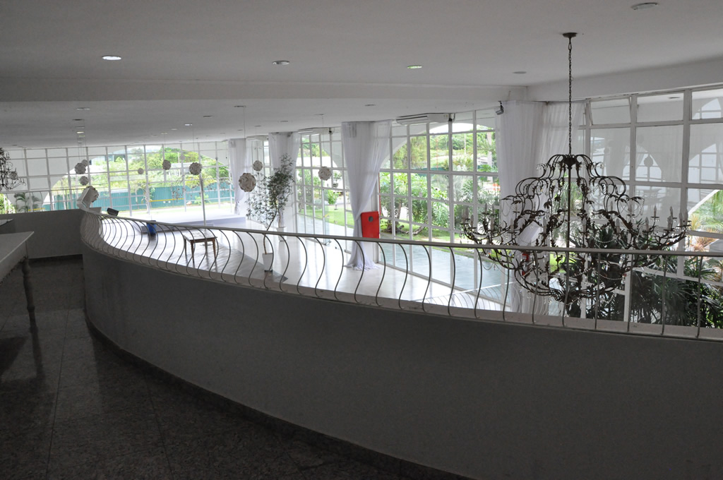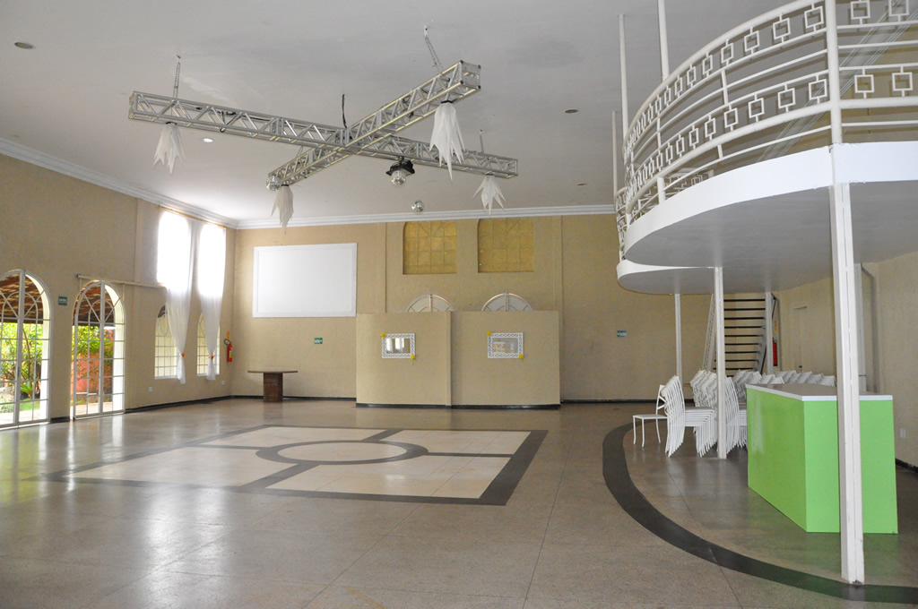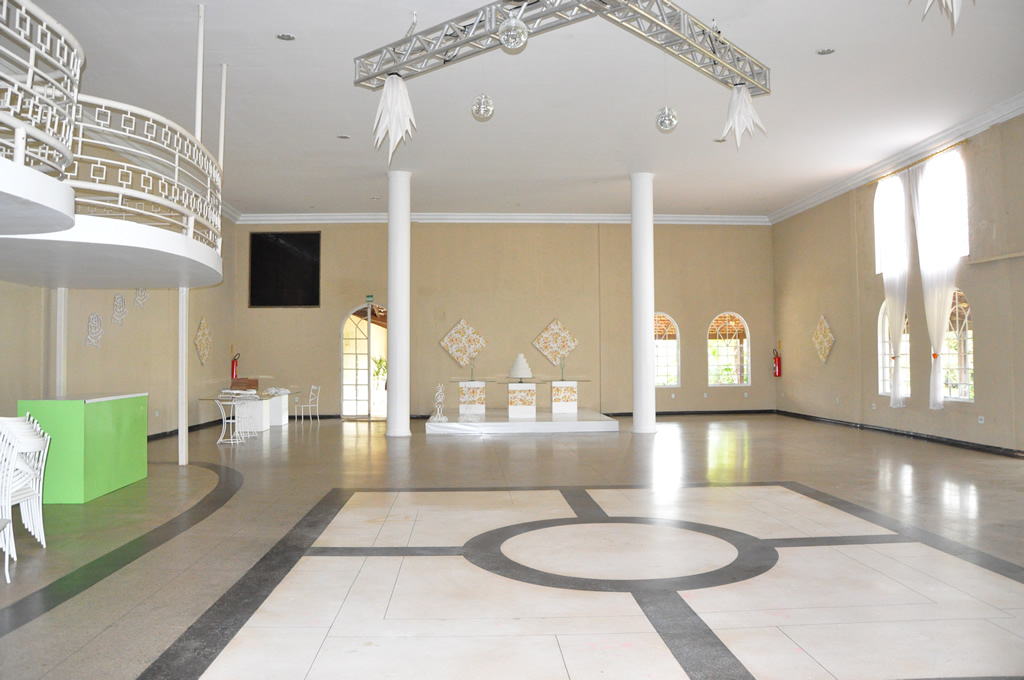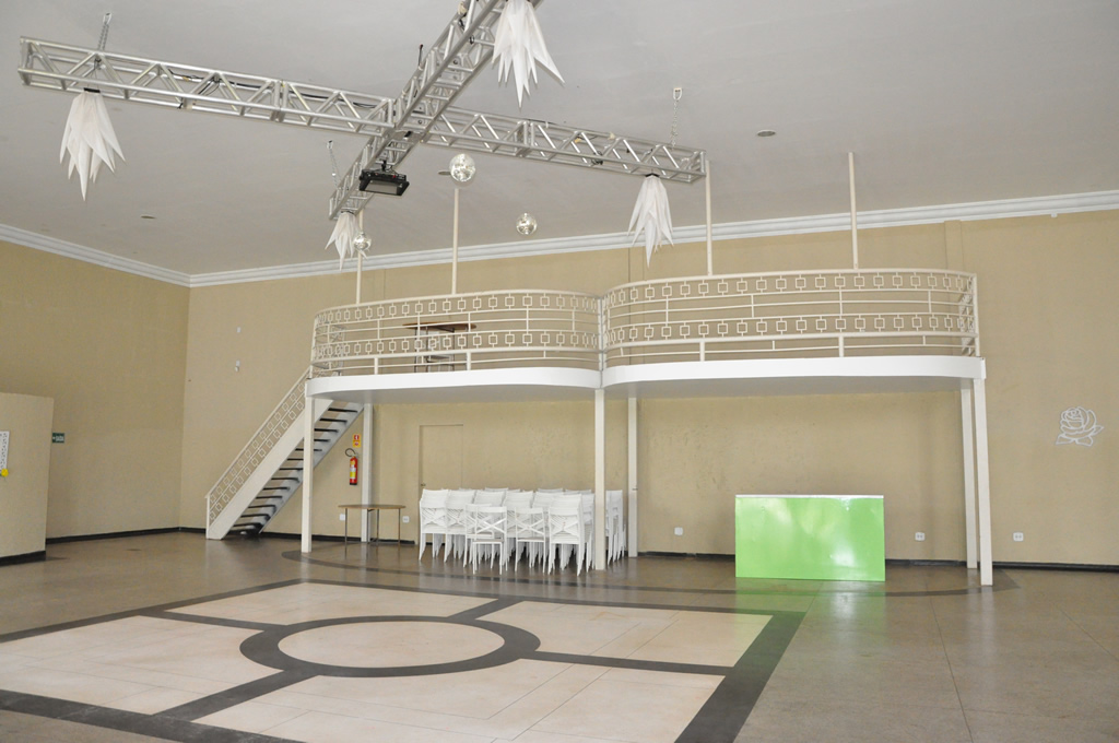 - Recepção coberta: São dois salões, o Salão 1 possui varanda e o Salão 2, mezanino.