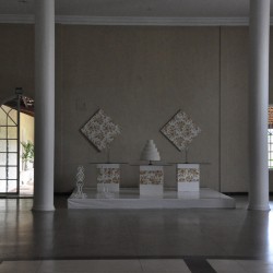- Cascata: Na parte mais atrás do espaço reservado para o altar.