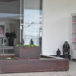 Já o Eden tem uma área externa agradável, mas não gostei nenhum pouquinho do espaço interno. Aquele piso de madeira escura não faz o meu tipo.
