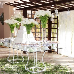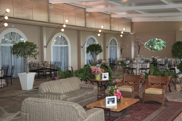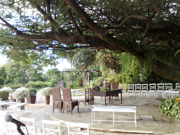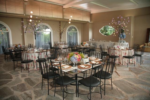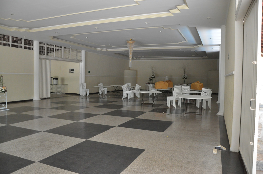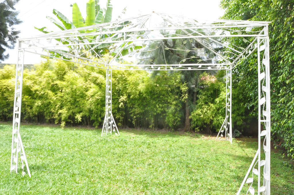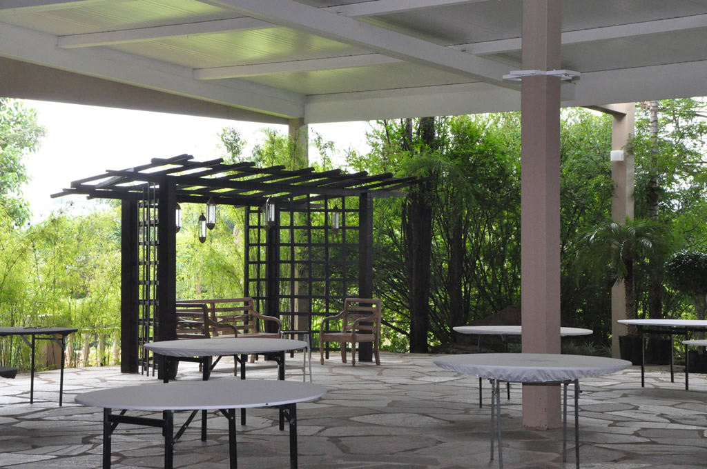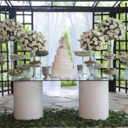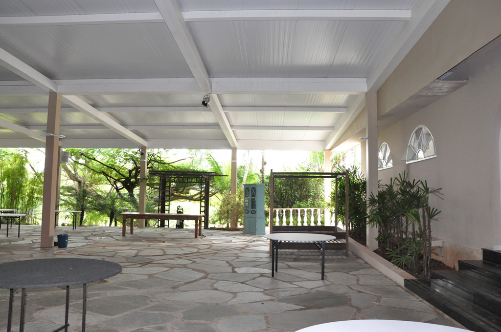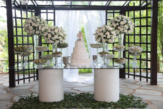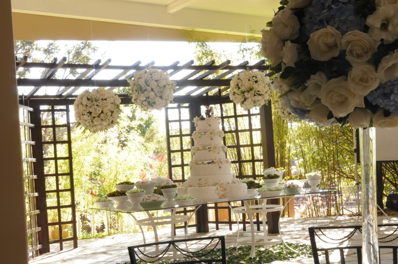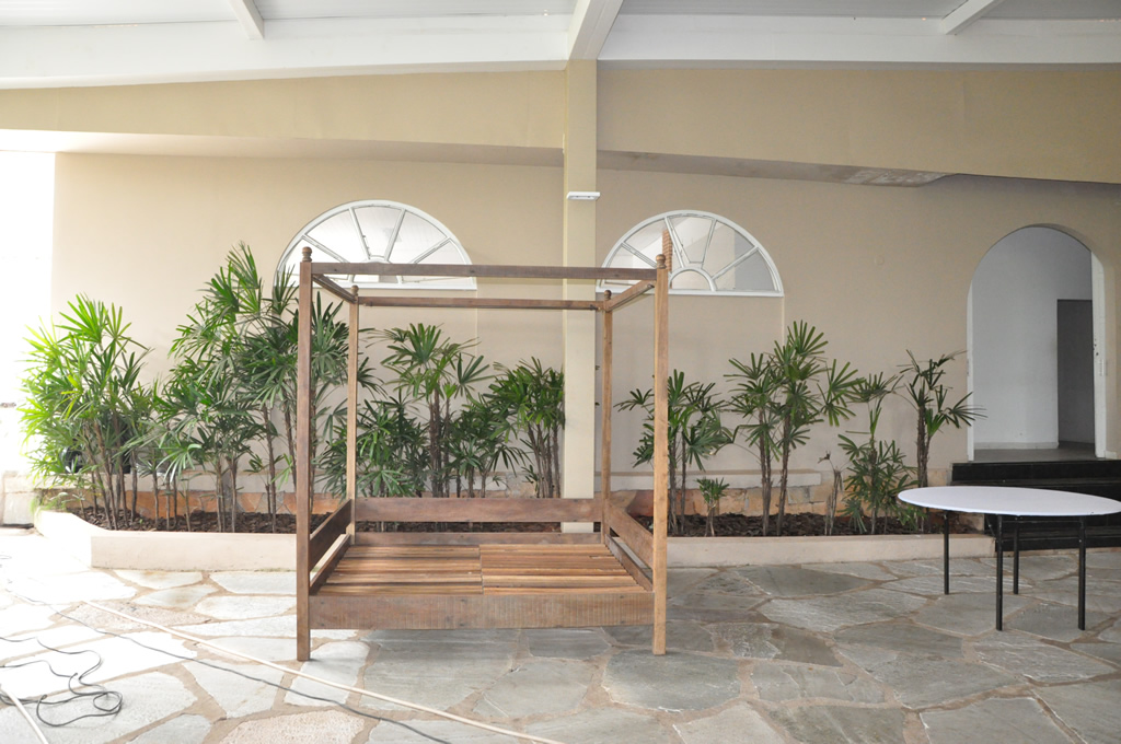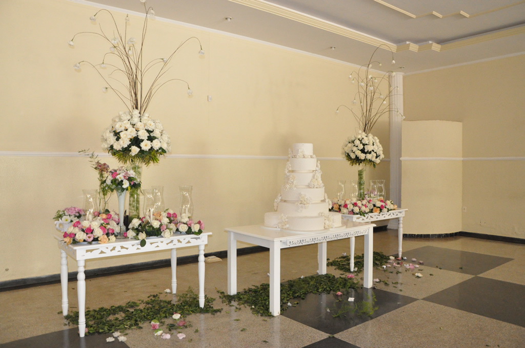 • O espaço inclui também os mobiliários: mesas de vidro, cadeiras de ferro, mesa do bolo e lounges etc.
