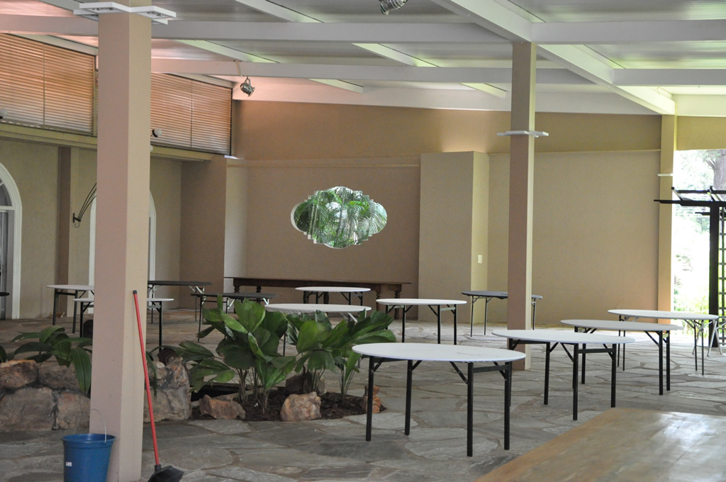 Recepção coberta: Boa, bem aberta e arejada