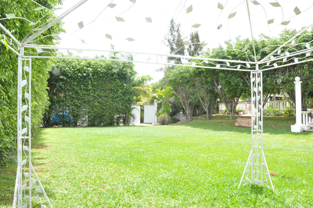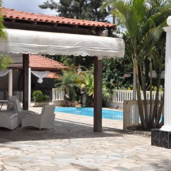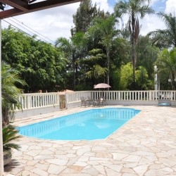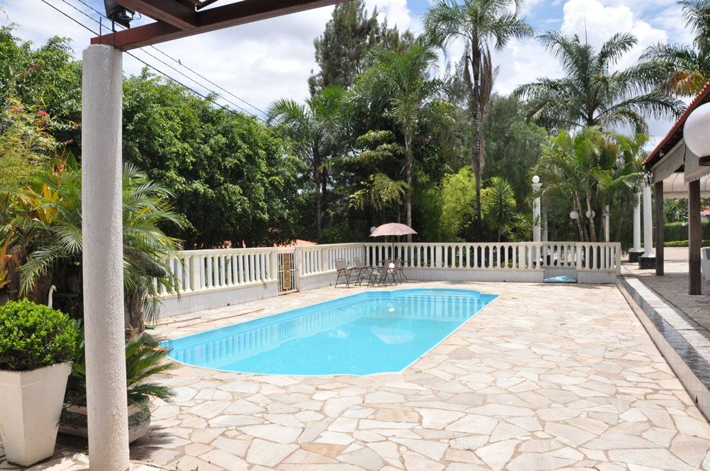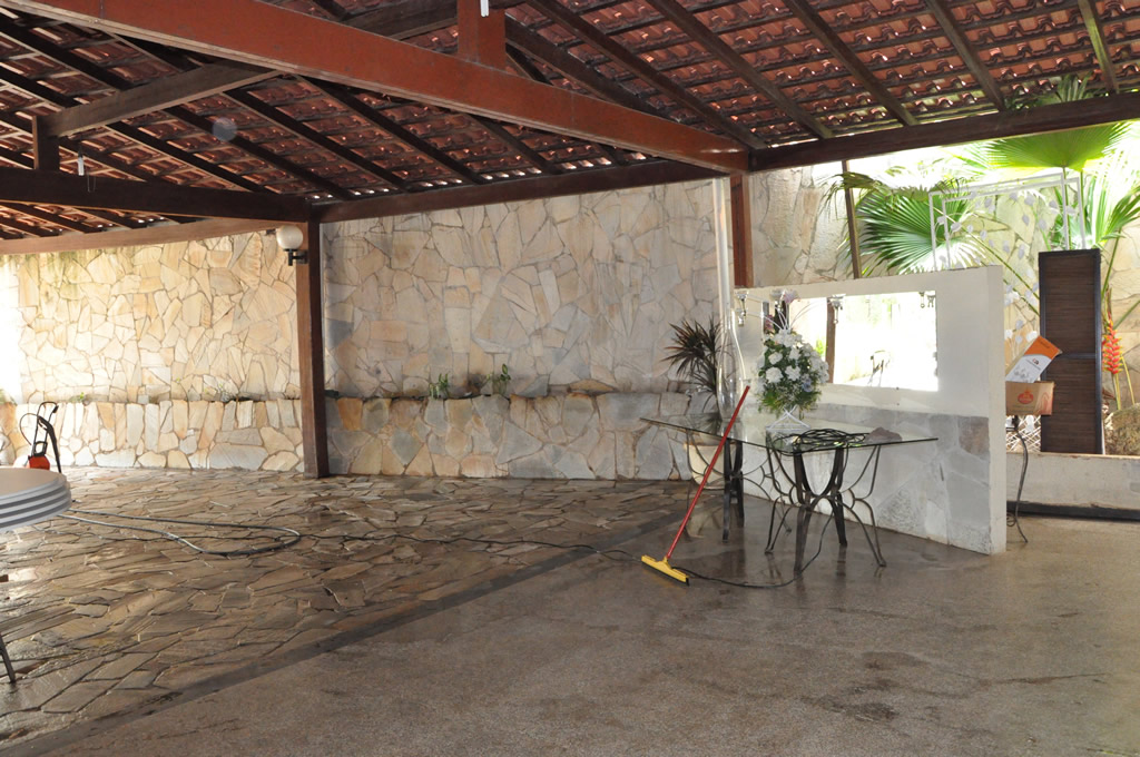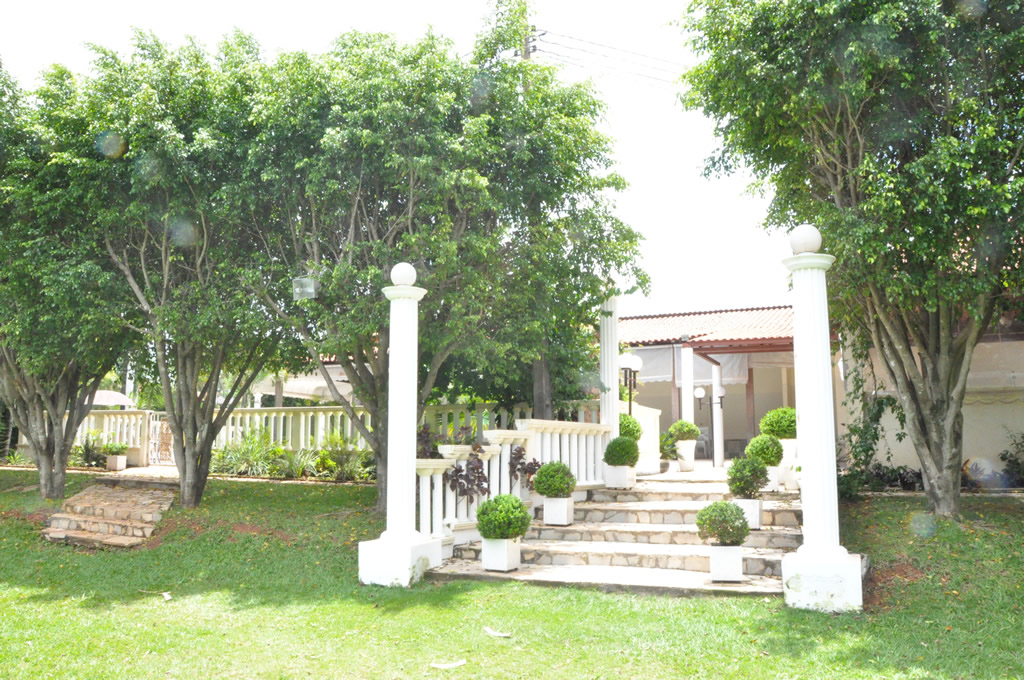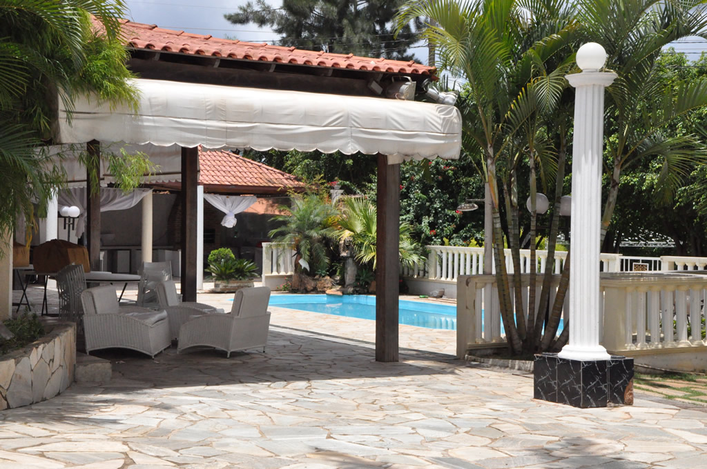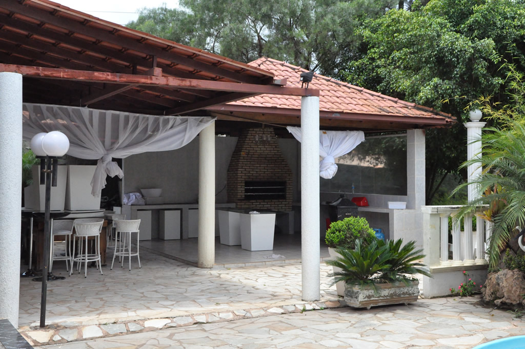 • Possui dois ambientes diferentes: salão principal e área externa com churrasqueira, piscina, cascata, varanda e espaço gramado para casamentos ao ar livre;