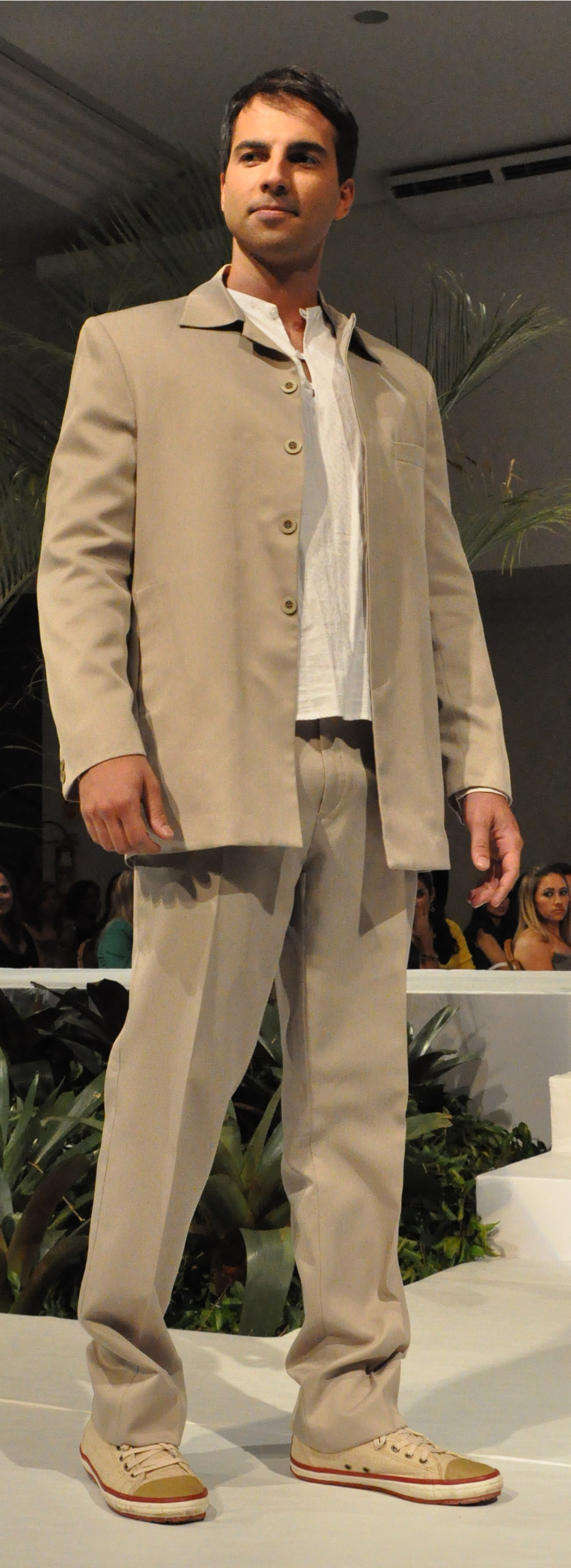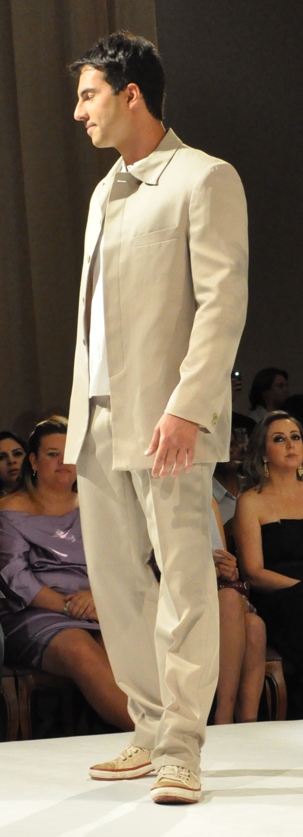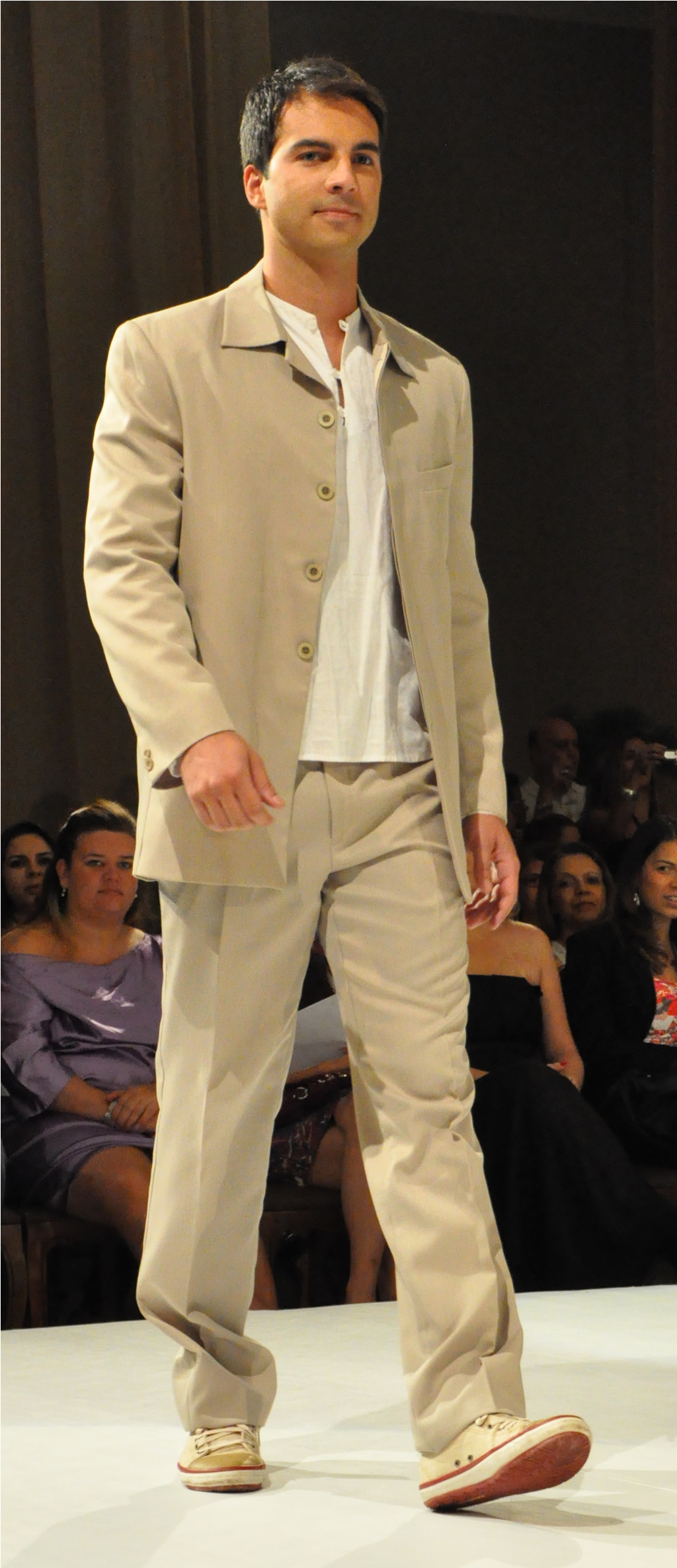 O desfile começou com os rapazes, acho que vestidos de M. Zanirato.