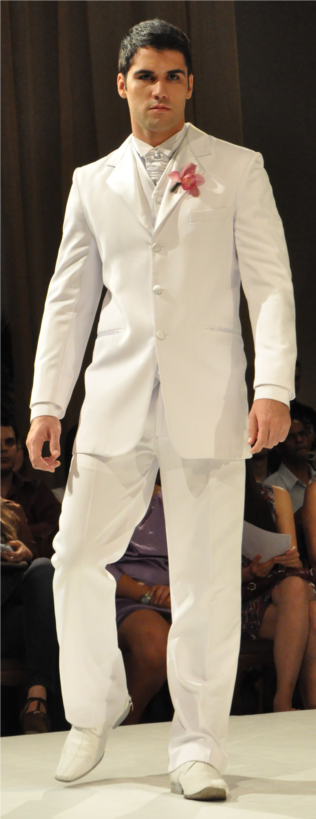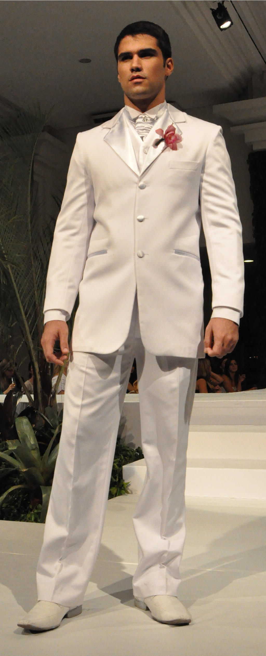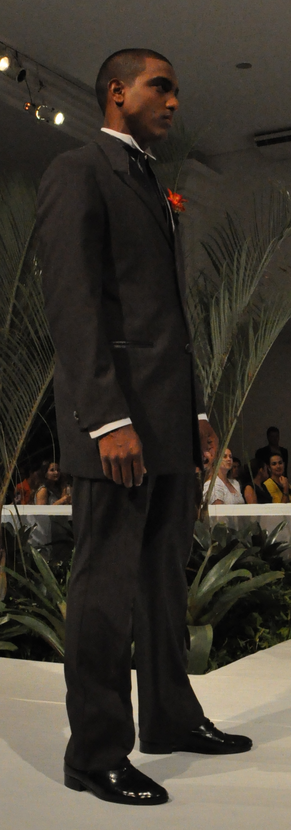 O desfile começou com os rapazes, acho que vestidos de M. Zanirato.