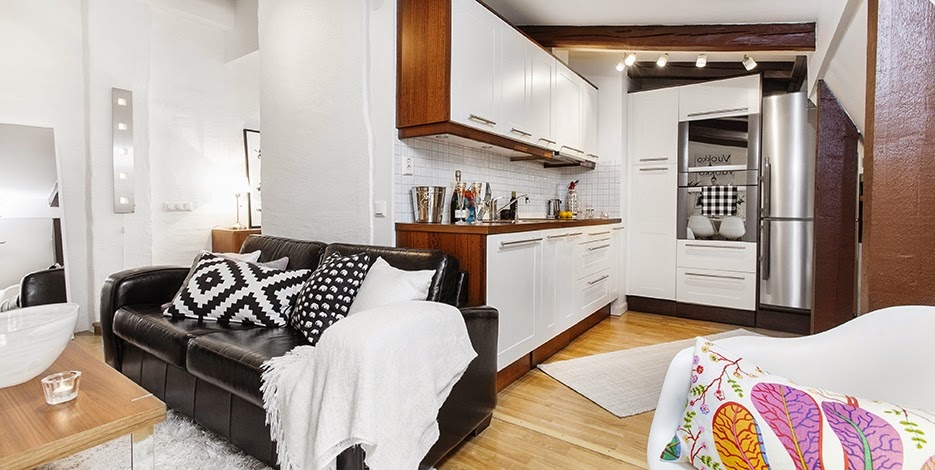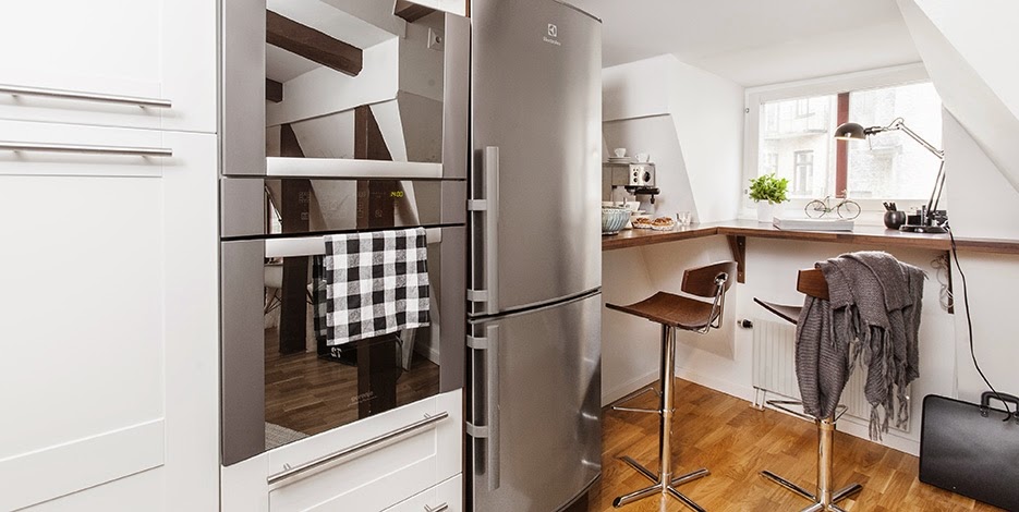 Embora tenha apenas 2 quartos, este loft em Estocolmo (Suécia) tem uma boa distribuição dos espaços, que faz com que pareçam mais espaçosos e muito confortáveis.