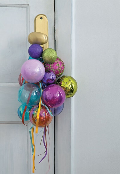 Escolhi para essa postagem um elemento básico da decoração natalina: bolas de Natal. E aqui elas saem do contexto da árvore e ganham todos os cômodos da casa.