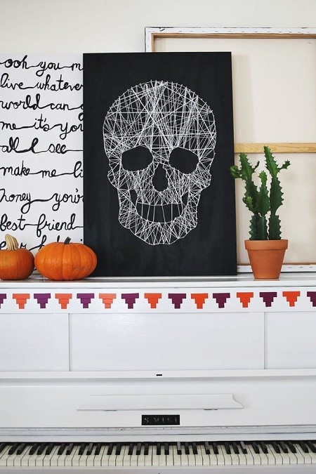 Caveira feita com pregos e linha