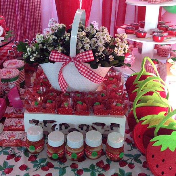 Super amei essa decoração, embaixo você pode colocar pezinhos de morango carregados