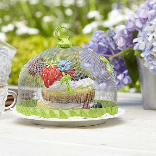 Muito delicada essa tampa para bolo com um moranguinho bordado