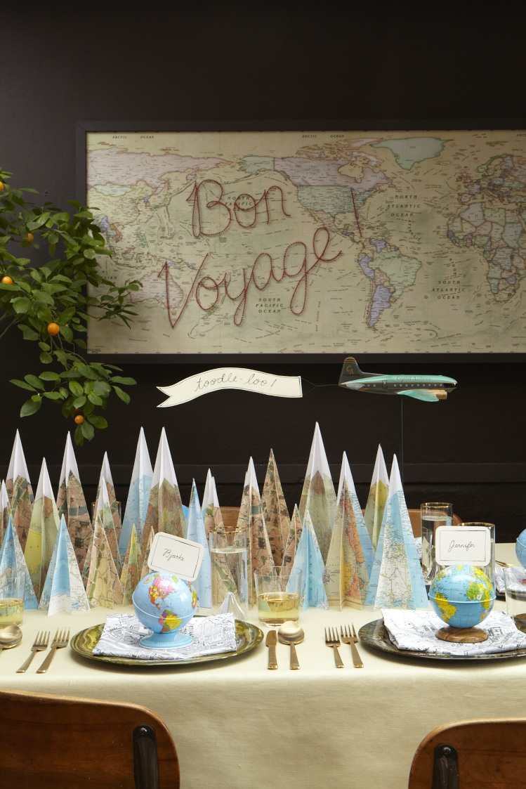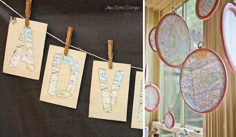 Ou que tal um caminho de mesa de “árvores” feitas de mapas?