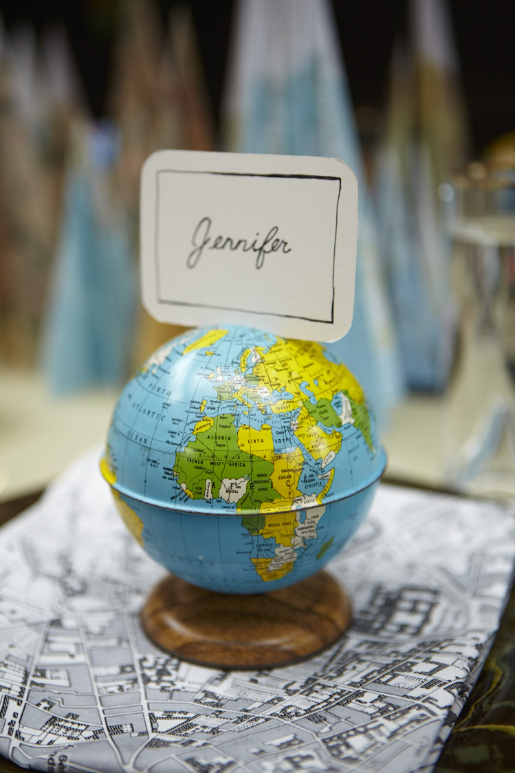 Marcador de lugar em formato de globo