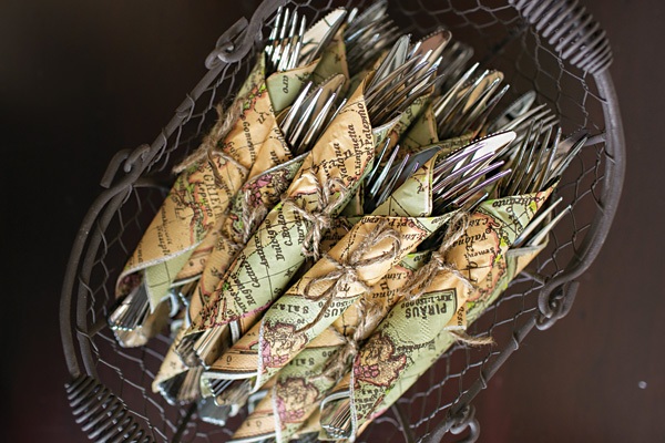 Que tal guardanapos de papel com mapas desenhados?