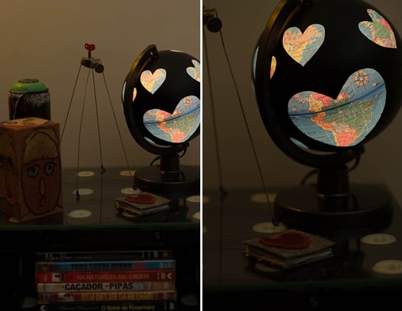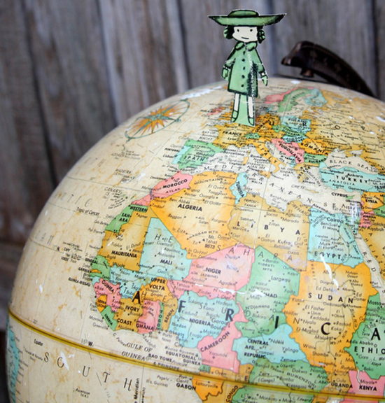 Encontre um cantinho para colocar um globo terrestre enfeitado com bonequinhos