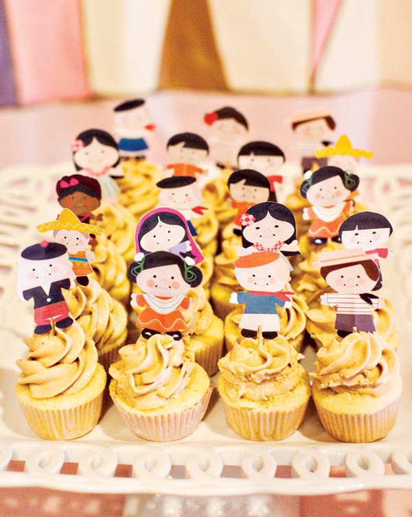 Que tal decorar os cupcakes com bonequinhos de diferentes nacionalidades?
