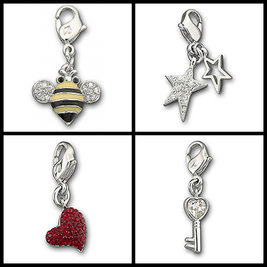 Instituí um plano de auto-recompensa, até criei uma tabelinha aqui ao lado. O namorado me deu uma pulseira de prata linda e a cada semi-meta alcançada, ela ganhará um berloque. Os berloques são a coisa mais linda do mundo e já estão ali no meu guarda-roupas esperando para serem usados. Olhem só as “carinhas” deles aí abaixo!